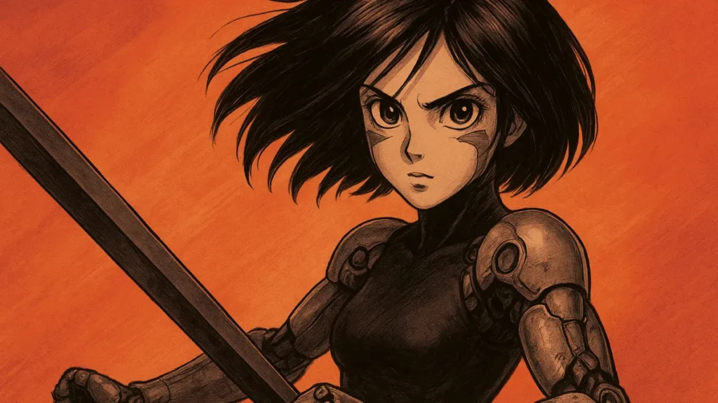 O ponto de partida é o mangá Gunnm, criado por Yukito Kishiro. É uma obra com camadas: ação, filosofia sobre identidade e sociedade pós-apocalíptica.